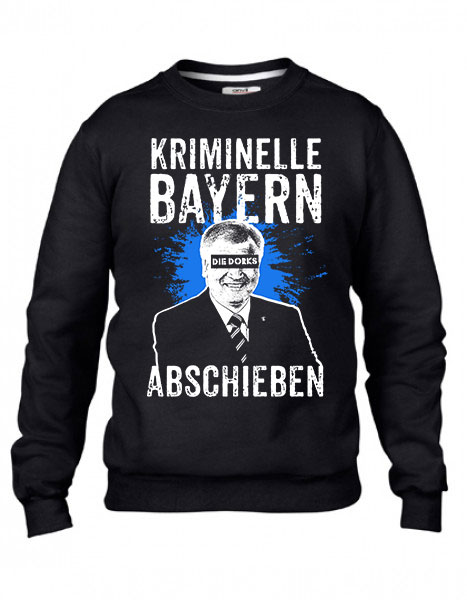 Das Motiv vom kriminellen Bayern in Persona als leichtes unisex Sweatshirt für Damen und Herren mit großem Frontmotiv.